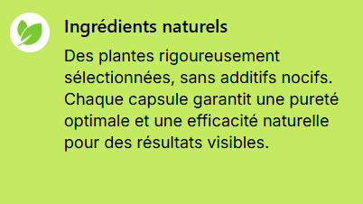 **Pureté et traçabilité :** Ingrédients testés et sélectionnés.